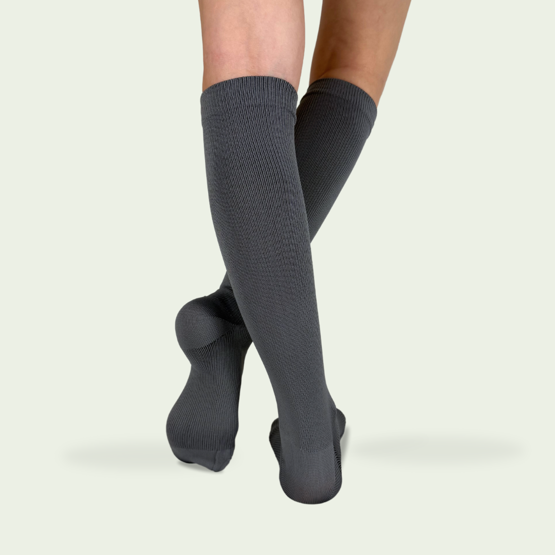 Kompression verhindert, dass sich Flüssigkeit in den Beinen staut und sorgt für leichte Beine.